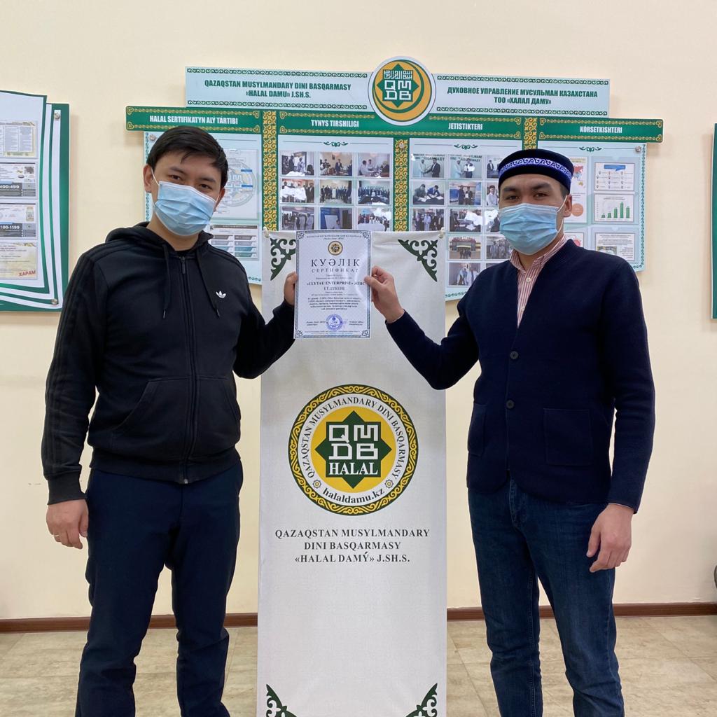 **Нұр-Сұлтан қаласында орналасқан «Ulytau Enterprise» кәсіпорнына тиесілі ет дүкені «ҚМДБ халал» сертификатына ие болды.** «Халал Дамудың» ветеринариялық санитария ісінің маманы, технолог Данияр Сафиев ет дүкенінде бақылау-қадағалау жұмыстарын жүргізіп, сауда орнында сатылатын ет өнімдерінің шариғат және халал стандарт талаптарына сай бауыздалып, өңделуін, сақтау, тасымалдау, сатылуын қадағалады. «Ulytau Enterprise» ет дүкені «*Мал бауыздау және ет өңдеу» және «Халал өнімдерді өндіру, өңдеу, дайындау, сақтау, тасымалдау, сатуға қойылатын жалпы талаптар» стандарты бойынша сертификатталып, «ҚМДб халал*» сертификаты табысталды. «Ulytau Enterprise» ет дүкені Нұр-Сұлтан қаласы, Алматы ауданы, 23-15 көшесі, 11/3 мекен-жайында орналасқан. Кәсіпорынға берілген сертификаттың жарамдылық мерзімі бірдей:**26.11.2020-25.11.2021**
