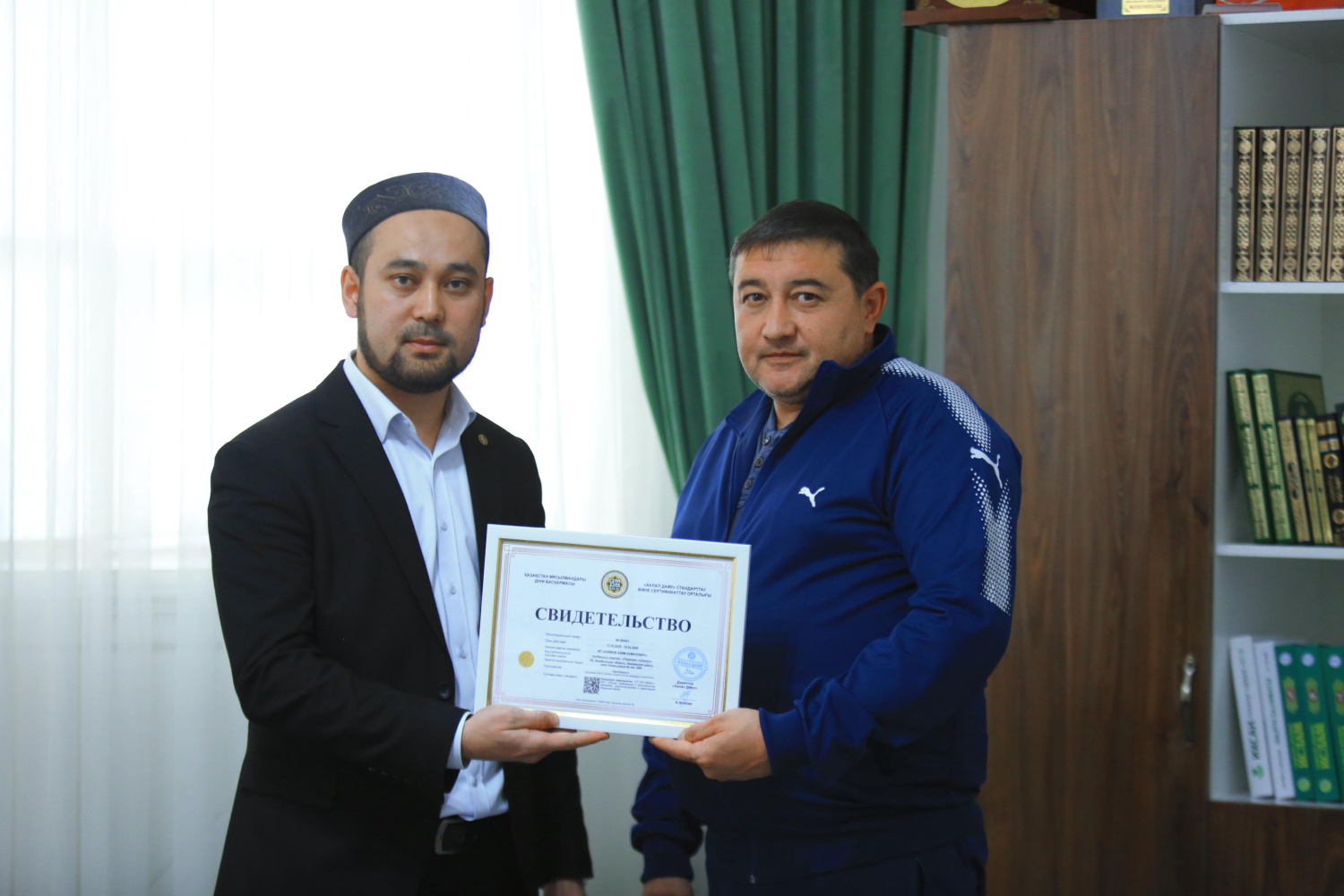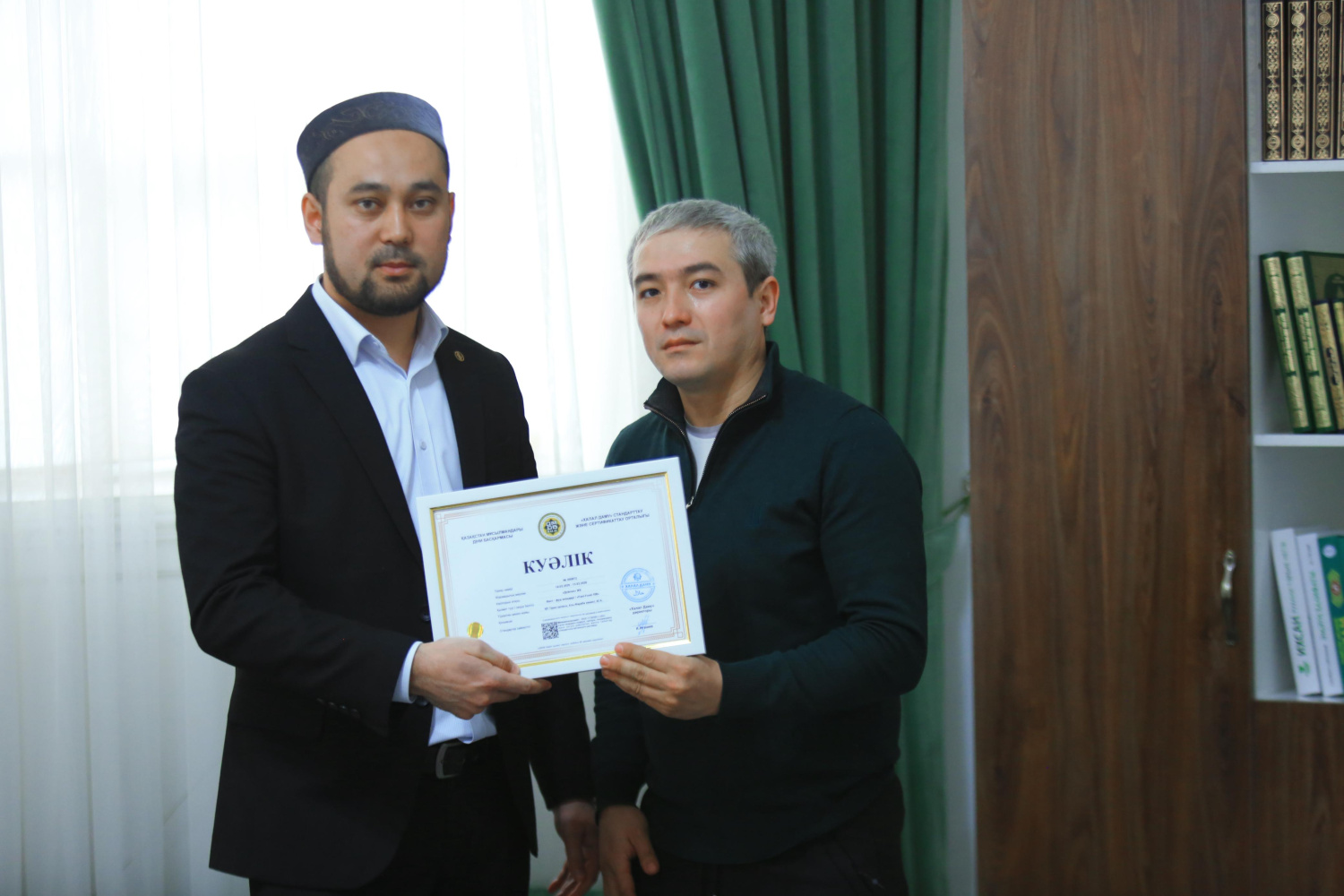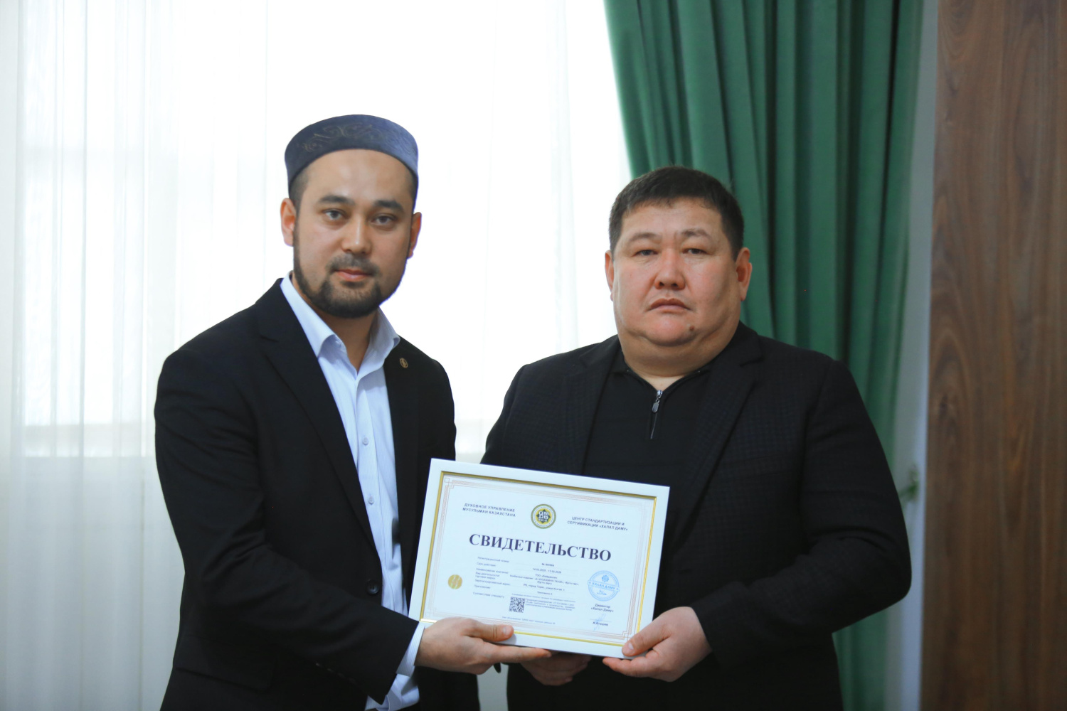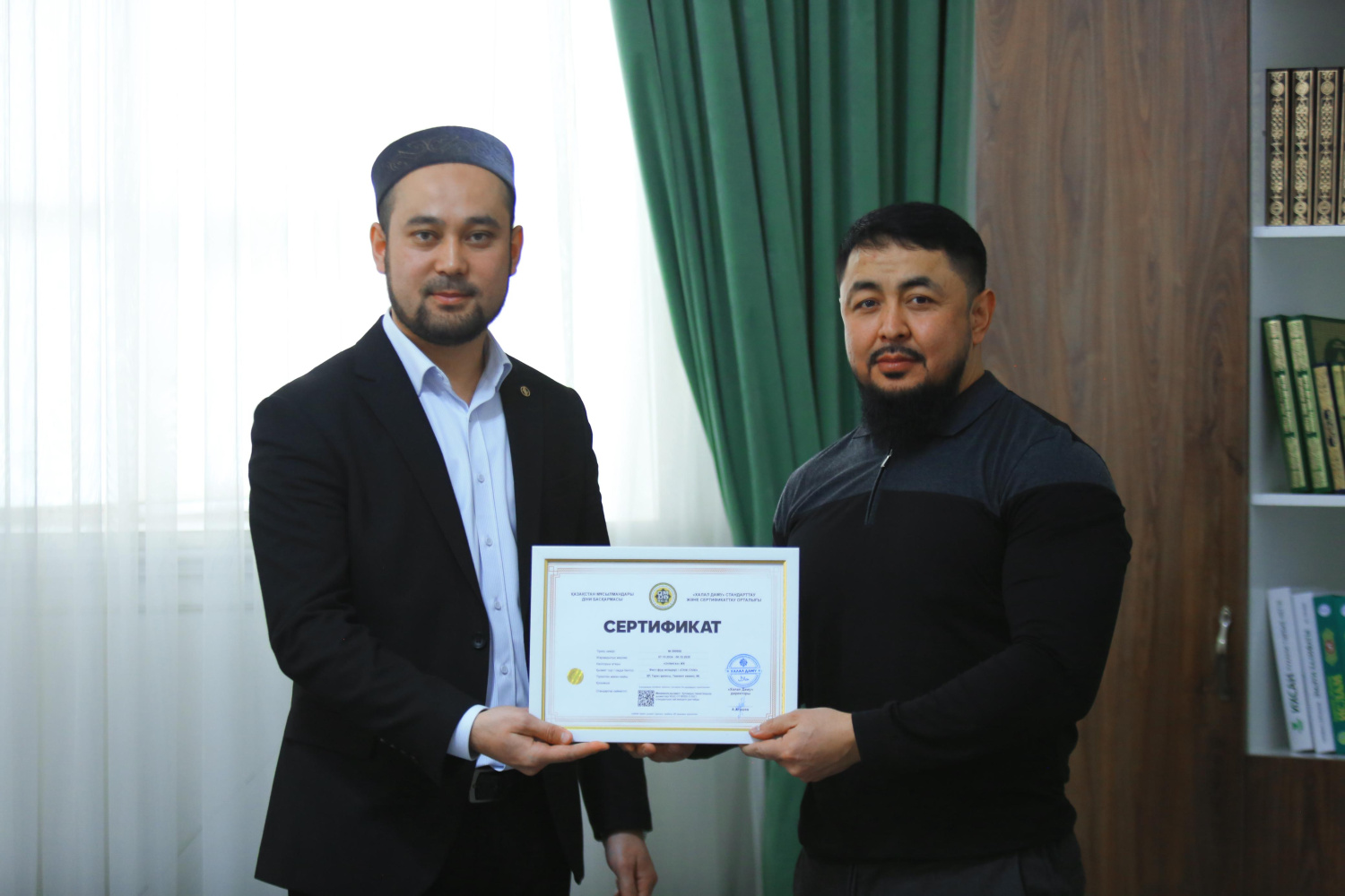 Қасиетті жұма күні Жамбыл облысының бас имамы Асқар Зәкіржанұлы аймақтағы бірнеше кәсіпорынға «QMDB Halal» сертификатын табыстады. Атап айтқанда, «ЖК Байданов», «ЖК Азиомов» «ЖК Исаев» шұжық цехтары, «ЖК Дүйсен», «ЖК United.kz» фаст-фуд өнімдері, «ЖК Аскөп» жартылай фабрикаттар кәсіпорындары сертификатталды.