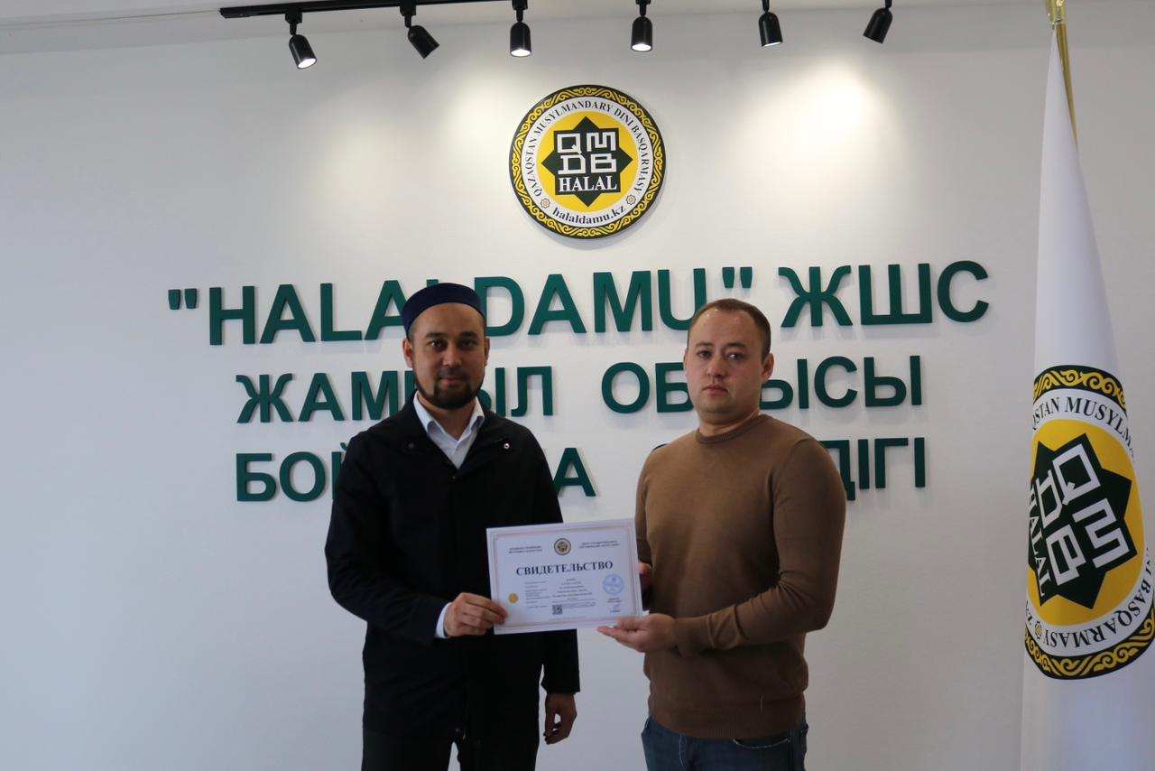 Жамбыл облысындағы бірқатар кәсіпорындар «QMDB Halal» стандарты талаптарына сай сертификатталды. Атап айтқанда: «Chiki-chiki», «Abayas» дәмханалары, «Chef star» кофеханасы, «Дим-ка» кондитерлік өндірісі, «Сарыбас» шұжық цехы халал талаптарына сай деп танылды. Сертификатты Жамбыл облысының бас имамы Асқар Зәкіржанұлы табыстады.