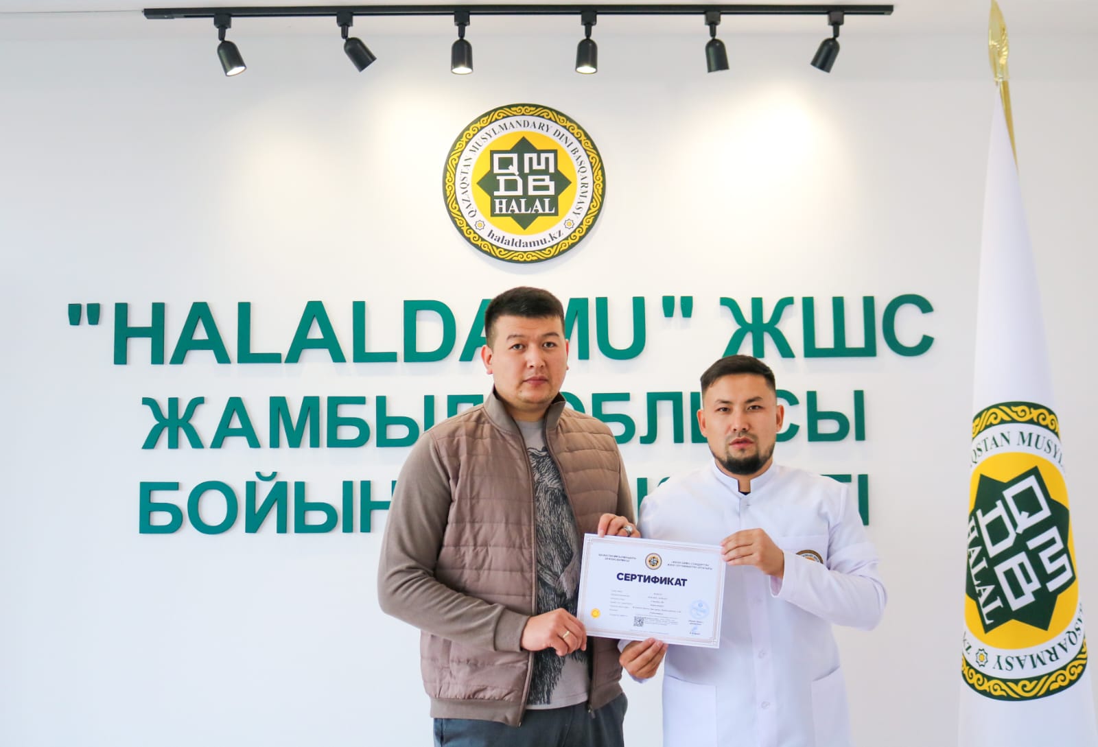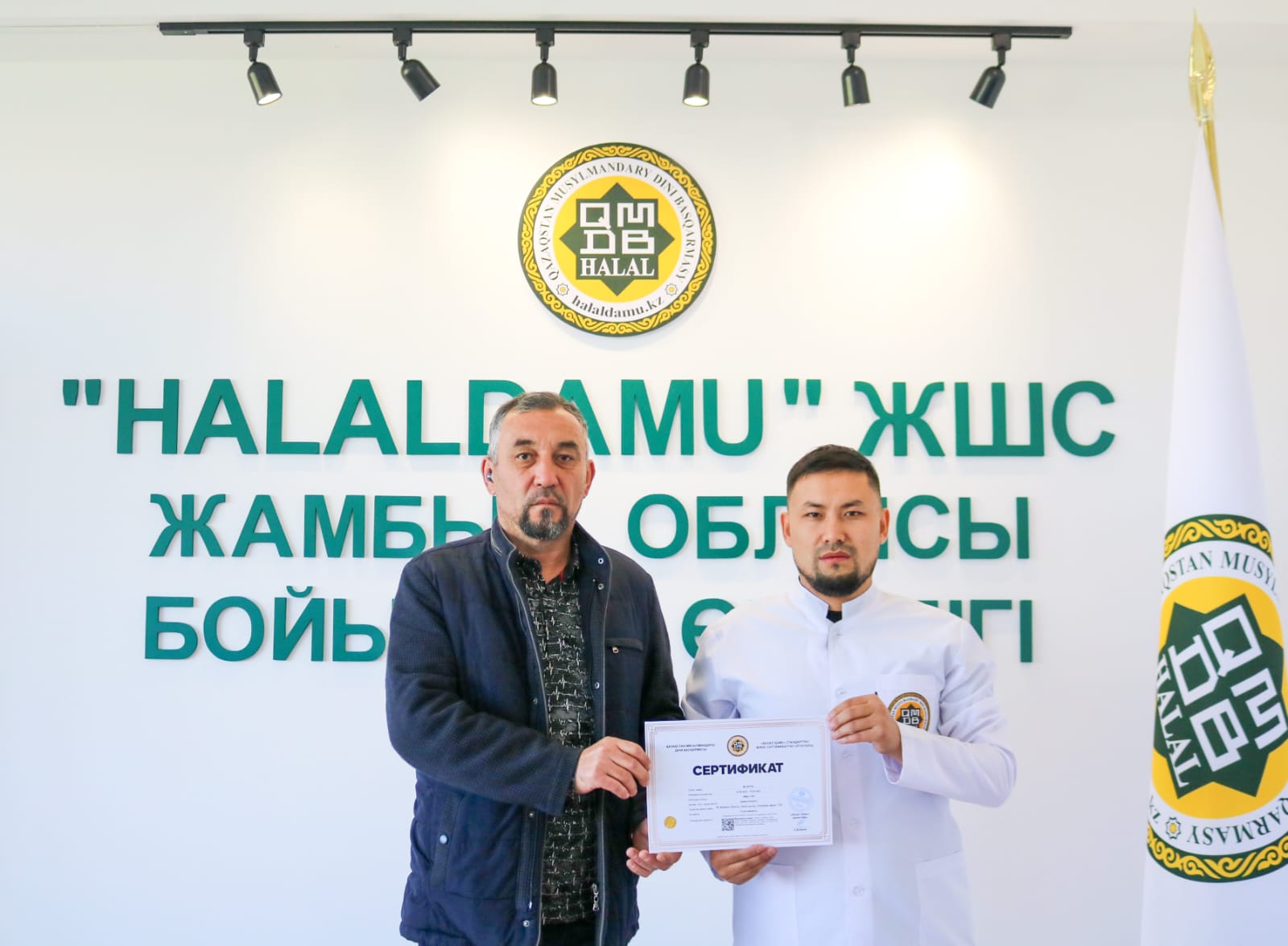 Жамбыл облысында бірқатар кәсіпорындар сертификатталды. Атап айтқанда, «Дим-Ка» кондитерлік кәсіпорны, «Март», Тенгри», «Тенгри», «Aisha», «Toy Eti» сауда белгда белгісімен шығарылатын шұжық өнімдері, «Maki-Maki» фаст-фуд дәмханасы алғаш рет сертификатталса, «Сарыбас» шұжық цехы, «Pacovis AG» тағамдық қоспалары сертификат жаңартты. Жергілікті технолог, инспектор-контролер Аблайхан Ғабитұлы Жамбылдағы «Халал Даму» өкілдігіне жиналған кәсіпорын иелеріне халал сертификатын табыстады.