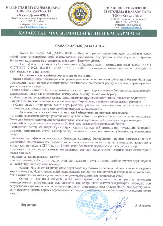 «Халал Даму»стандарттау және сертификаттау орталығы